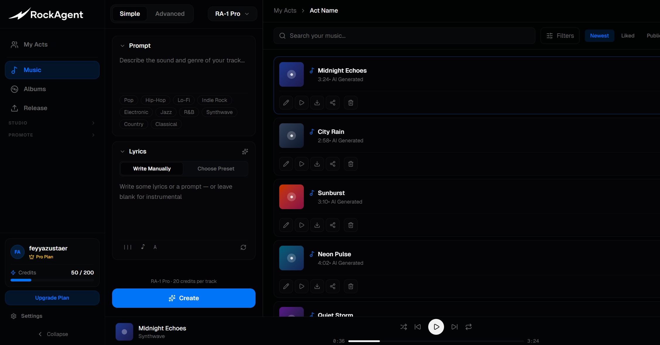 RockAgent is a Delaware-based AI company that replaces fragmented tools with a single unified system. It turns separate outputs into a complete, release-ready music project.
